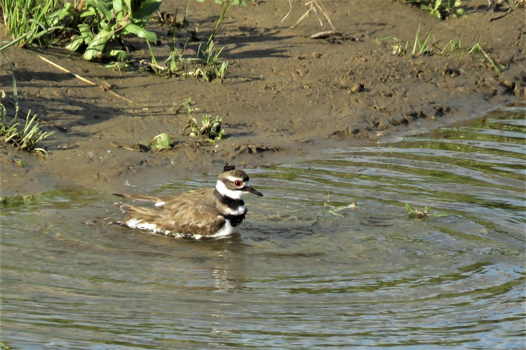 I enjoy early summer. It feels so good when the days finally warm up with not a shiver in sight. I like those days when you can go outside and actually feel the heat. At 72-76 degrees you don’t feel anything except that feeling of being comfortable. But, when it gets up to the mid 80s and low 90s you feel the heat. That is when a good soak in the river feels good. Ask this Killdeer, and he’ll tell you that it is so.
