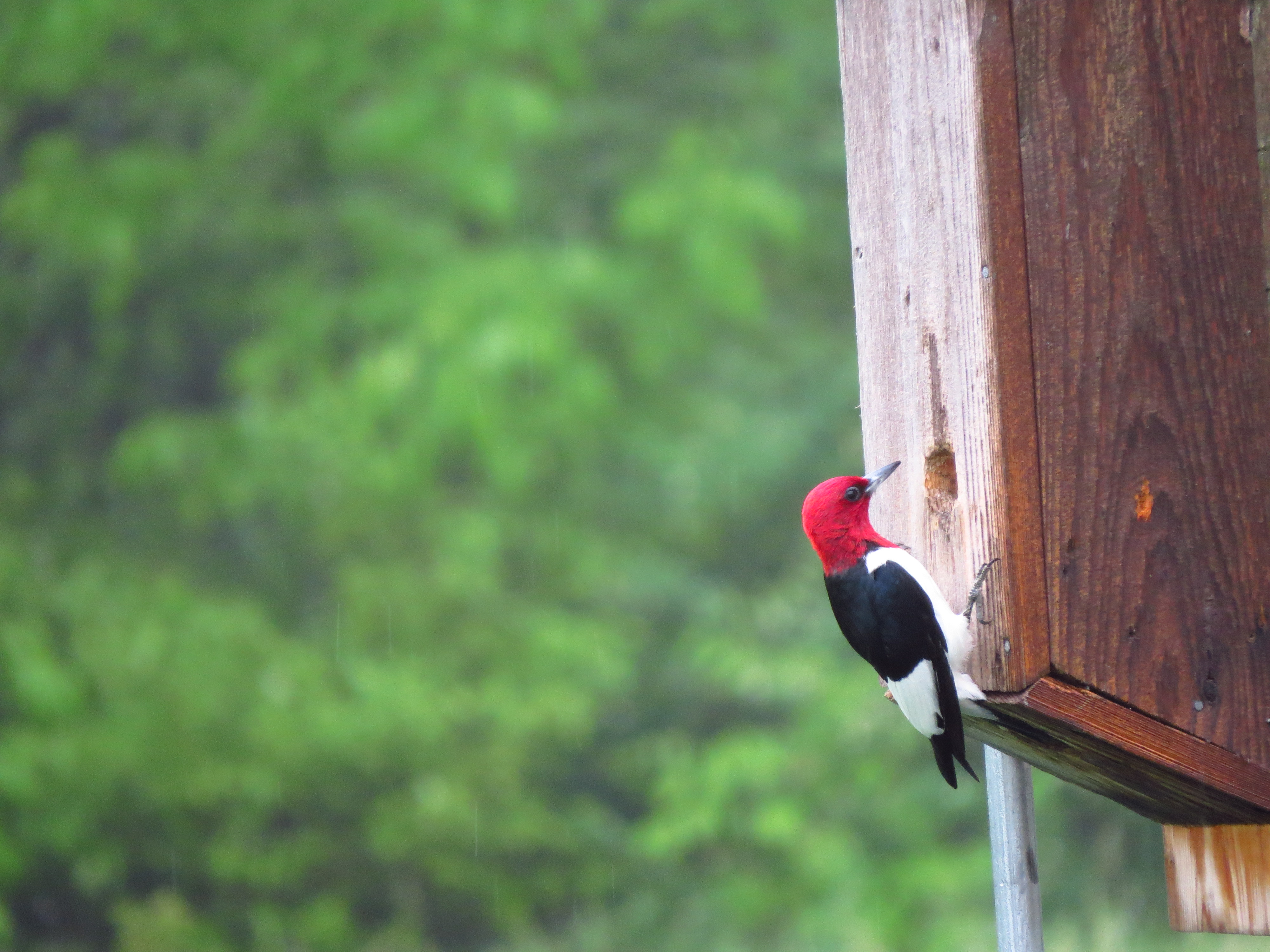 Most of the woodpeckers that feed at the feeder are red headed woodpeckers. One morning a red headed woodpecker was sitting on top of the feeder making a huge fuss. Finally my wife asked if the feeder was empty. I knew it was, but I was out of peanuts at the time. The woodpecker continued fussing. The next morning he sat on the feeder again and continued scolding me for my carelessness. Finally I bought peanuts and filled the feeder. All was well. The woodpecker was happy.